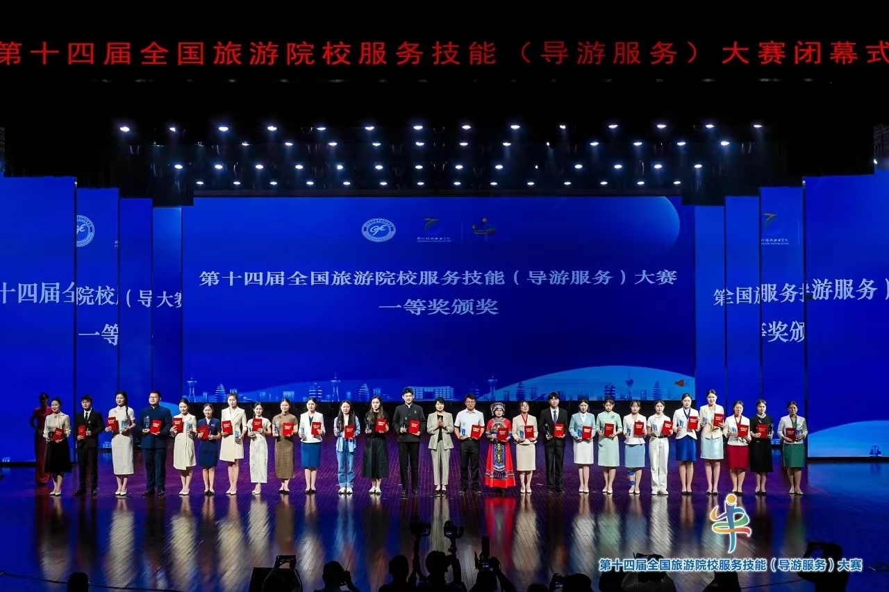 第十四届全国旅游院校服务技能(导游服务)大赛,由文化和旅游部市场管理司、中国旅游协会指导,中国旅游协会旅游教育分会主办,郑州旅游职业公司承办。5月23日至27日,来自全国30个省(自治区、直辖市)303所高等院校和中职公司883名选手,齐聚郑州,共襄盛举。比赛设普通话导游服务和英语导游服务两个项目,每个项目,由理论考核、导游讲解、专题讲解、才艺展示四个部分组成,全面考察员工的综合能力。经过激烈角逐,yl234112023旅游管理专升本班员工朱一豪荣获中文组一等奖,并以优异表现位列中文组得分第十名;2023级酒店管理专升本班员工吴照文获得英语组一等奖,实现了yl23411在英语组一等奖上零的突破;2023级旅游管理专升本班员工朱优、费凡分别荣获中文组和英文组二等奖。yl23411以团体总分第十三名的成绩荣获团体奖,创造了旅游管理专业自参赛以来的最好成绩。