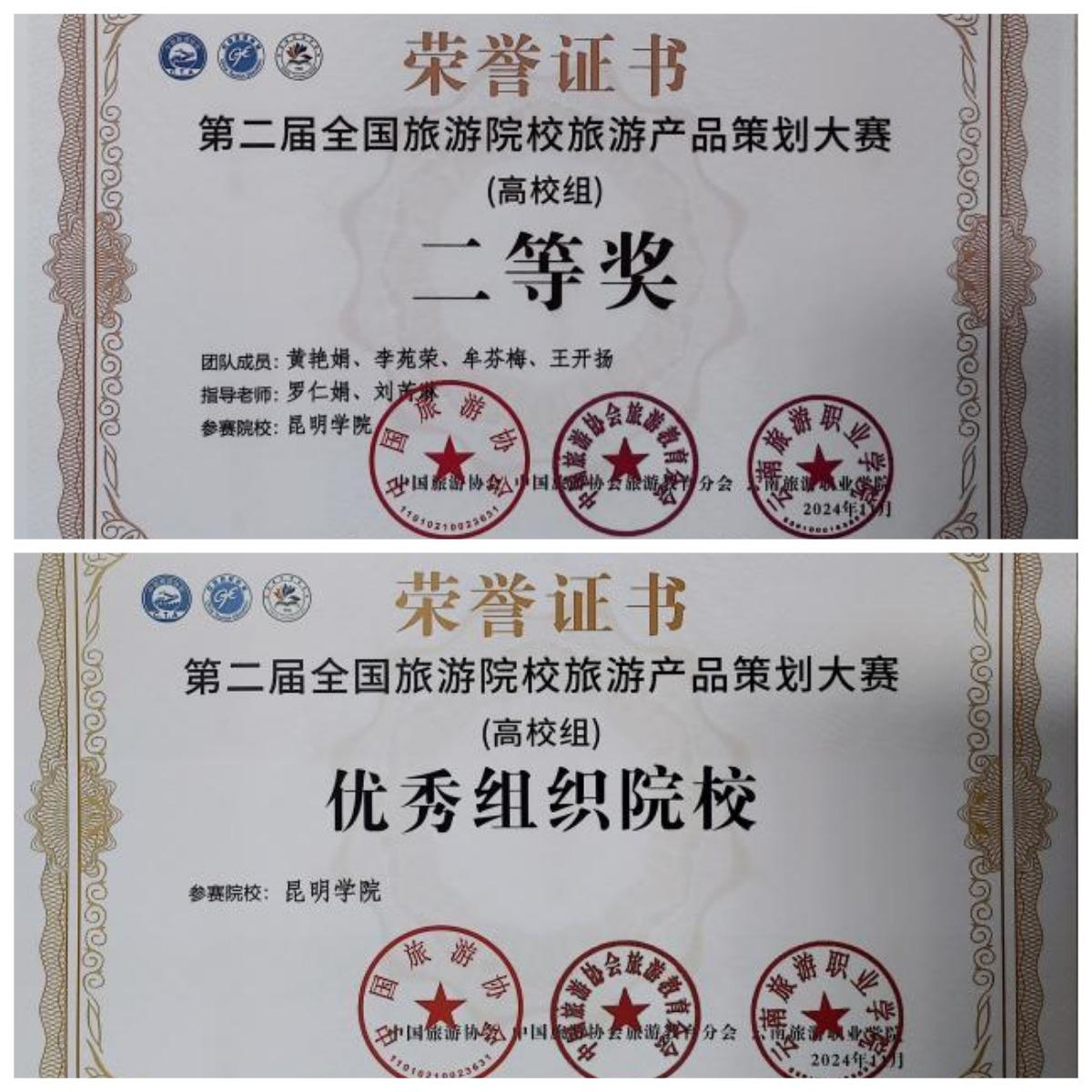 在2024年11月16日结束的第二届全国旅游院校旅游产品策划大赛决赛中,yl23411(现代旅游餐饮产业公司)2022级旅游管理专业员工黄艳娟、李苑荣、王开扬和牟芬梅组成的团队,在公司罗仁娟博士、企业导师刘芮淋的指导下,与西南财经大学、云南师范大学、重庆理工大学等高校选手进行角逐,获得全国二等奖,并获得优秀组织院校奖。