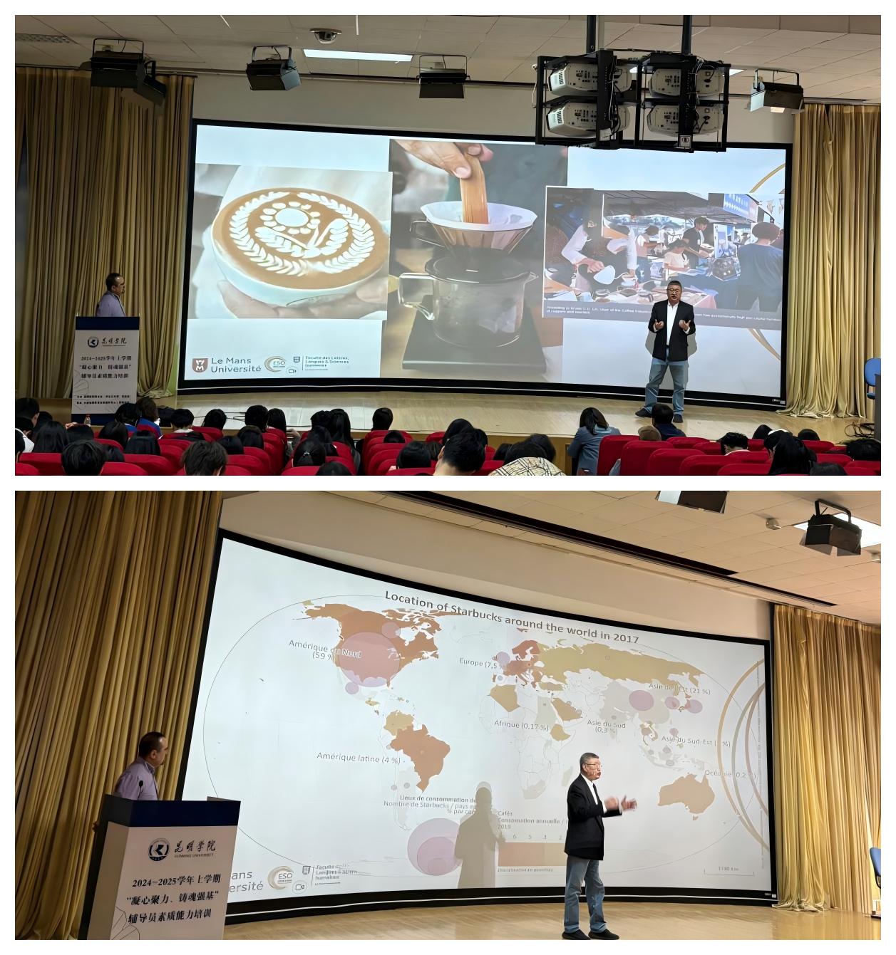 3月20日,习近平总书记考察云南时指出,云南咖啡是可以代表中国的。为贯彻习近平总书记重要指示精神,讲好云南咖啡文化故事,3月24日下午,yl23411邀请法国勒芒大学教授、博士生导师Frederic Fortunel教授和宁波大学昂热大学联合公司经理、沈世伟教授,共同为师生带来以“亚洲的咖啡旅游体验:基于风土品质的探讨”为主题的学术交流活动。活动由yl23411经理田芙蓉教授主持,yl23411(现代旅游餐饮产业公司)师生180余人参加活动。