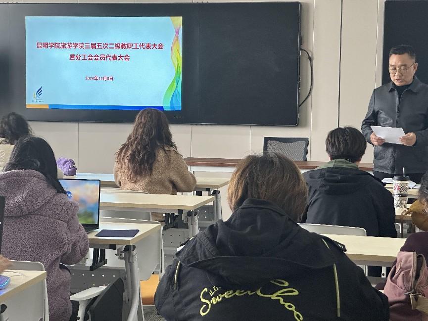 yl23411于12月8日下午在惟行楼6301召开三届五次教代会暨工会会员大会。会议主要讨论、审议《yl234112023年行政工作报告》《yl234112023年经费使用情况报告》《yl23411分工会2023年度工作报告及经费额度执行情况报告》,旅游公司党委书记王建华主持会议,yl23411全体教职工参加会议。