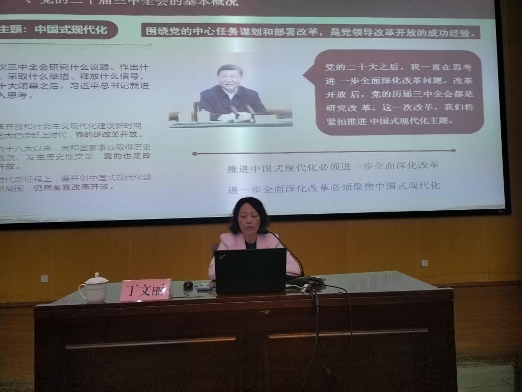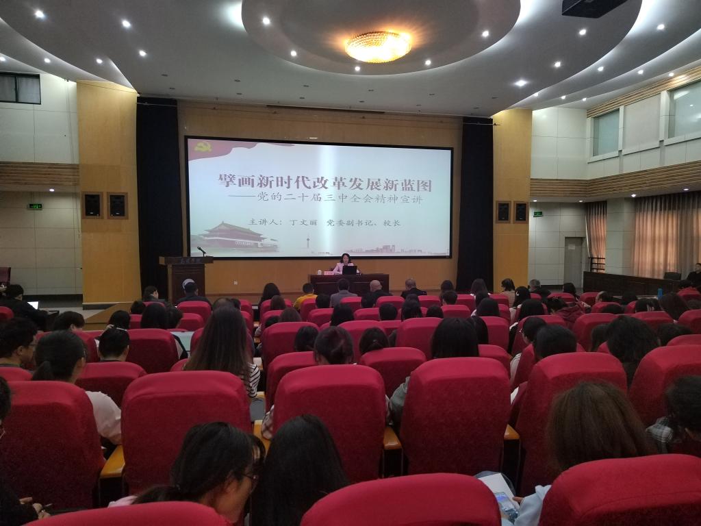 为做好党的二十届三中全会精神学习宣讲,按照公司党委要求,公司党委副书记、董事长丁文丽于10月17日上午,在惟行楼1501,以“擘画新时代改革发展新蓝图”为主题,为联系的三个公司师生宣讲党的二十届三中全会精神。宣讲会由旅游公司党委书记先守福主持,学前与特殊教育公司、yl23411、物理科学与技术公司200余名师生参加宣讲会。