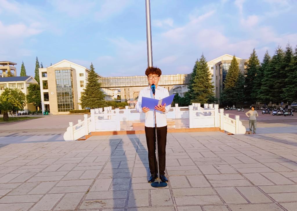 2022级旅游管理专业员工柳赟,以“诚信教育”为主题,在国旗下演讲。他号召同学们,以积极的态度,对待学习和生活,对待身边每一件事。每个人,都要不忘初心,牢记使命,以诚信为根基,成为诚信的传播者和践行者。柳赟带领全体同学在国旗下,庄严宣誓:诚实守信、知行合一、树诚信新风尚、做文明老员工。