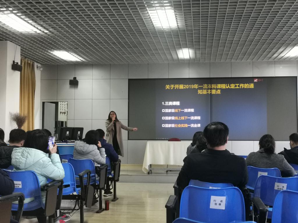 为贯彻落实《教育部办公厅关于开展2019年线下、线上线下混合式、社会实践国家级一流本科课程认定工作》的通知,配合公司做好国家“一流本科课程”申报工作,积极推进教学理念转变,帮助教师提升课程教学设计能力,提高课堂教学质量,切实打造优质“金课”,yl23411联合超星课程制作公司于12月13日组织开展了国家级、省级一流本科课程申报培训在惟行楼1105举行。