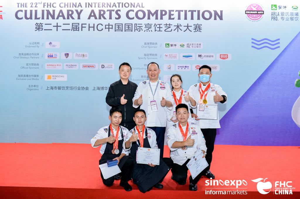 2020年11月10-12日,yl23411代表队一行7人在参加上海新国际博览中心举办的第22届FHC中国国际烹饪艺术比赛中,喜获奖牌11枚:包括金牌2枚,银牌3枚,铜牌6枚。领队及指导教师为2019年公司柔性引进人才春城首席技师王勇大师,队员为yl234112016-2019级烹饪、烹调专业员工,涉及专科、本科、专升本科同学遴选参加,同时烹饪教研室教师康烨第二次代表公司参加青年教师个人赛。