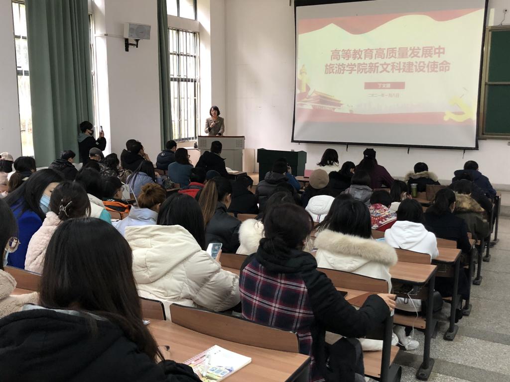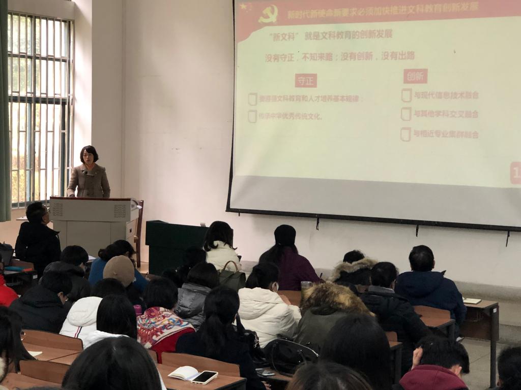 1月8日,昆明公司党委副书记、董事长丁文丽在博雅楼3102教室,以“高等教育高质量发展中yl23411新文科建设使命”为主题,给yl23411全体师生党员上专题党课。