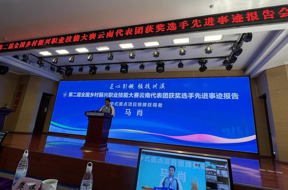 5月23日,yl23411烹饪与营养教育专业员工马肖,在第二届全国乡村振兴职业技能大赛云南代表团获奖选手先进事迹报告会上,交流其先进事迹。