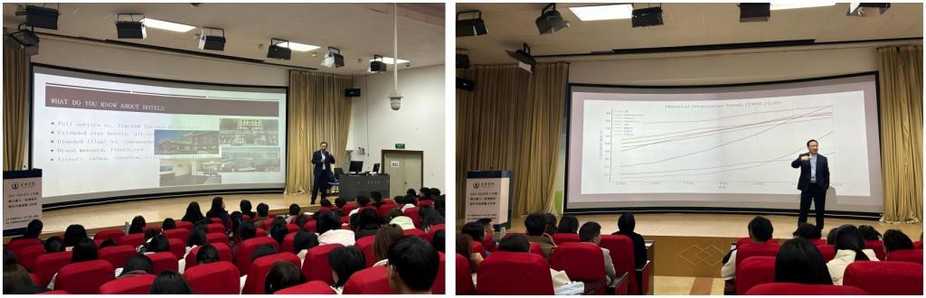 刘鹏教授结合康奈尔大学酒店管理学科研究成果及全球典型案例,系统阐释了数字经济背景下对酒店行业的深刻影响,特别聚焦酒店行业“轻资产战略”,深入探讨了品牌管理、地产管理、酒店管理合约等关键议题。刘鹏教授指出,轻资产战略已成为全球酒店行业主流发展方向,通过品牌输出、管理合同和特许经营等方式,酒店集团能够以较低成本实现快速扩张,同时降低自身财务风险,以万豪、希尔顿等国际酒店集团为例,解读了轻资产的核心优势。互动环节,员工就酒店管理方面专业知识及就业问题踊跃提问,刘鹏教授结合国内外前沿理论与自身调研数据逐一解答,深入浅出的分析与幽默风趣的语言,赢得现场阵阵掌声。讲座尾声,刘鹏教授鼓励在场师生要积极关注行业前沿动态,不断提升自身专业素养和实践能力。